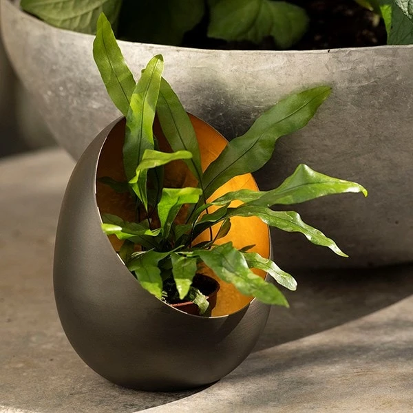 Made from 1mm sheet steel with a smooth blackened finish and burnished golden interior. Holds one standard tealight candle.