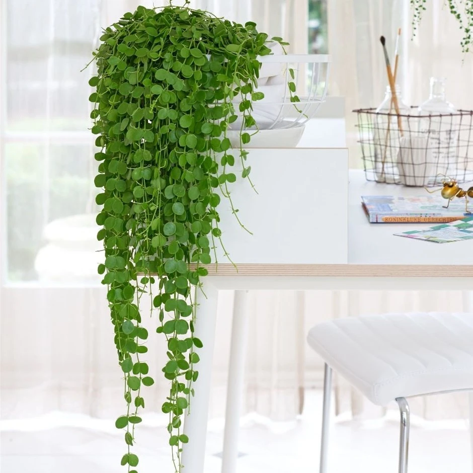 An easy to grow and very decorative house plant, with its near-circular fleshy green leaves, which form along the length of the trailing stems – occasionally accompanied by tiny white flowers.