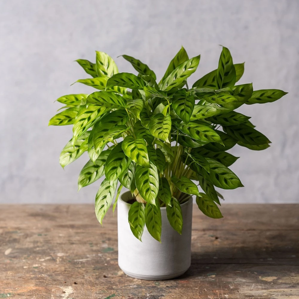 We love this plant! Bright green leaves decorated with deeper green patterned markings, reminiscent of an animal print, stand out from the plant on strong upright stems creating a well-shaped pretty plant. Choose your spot carefully and this gorgeous foliage plant will steal your heart!