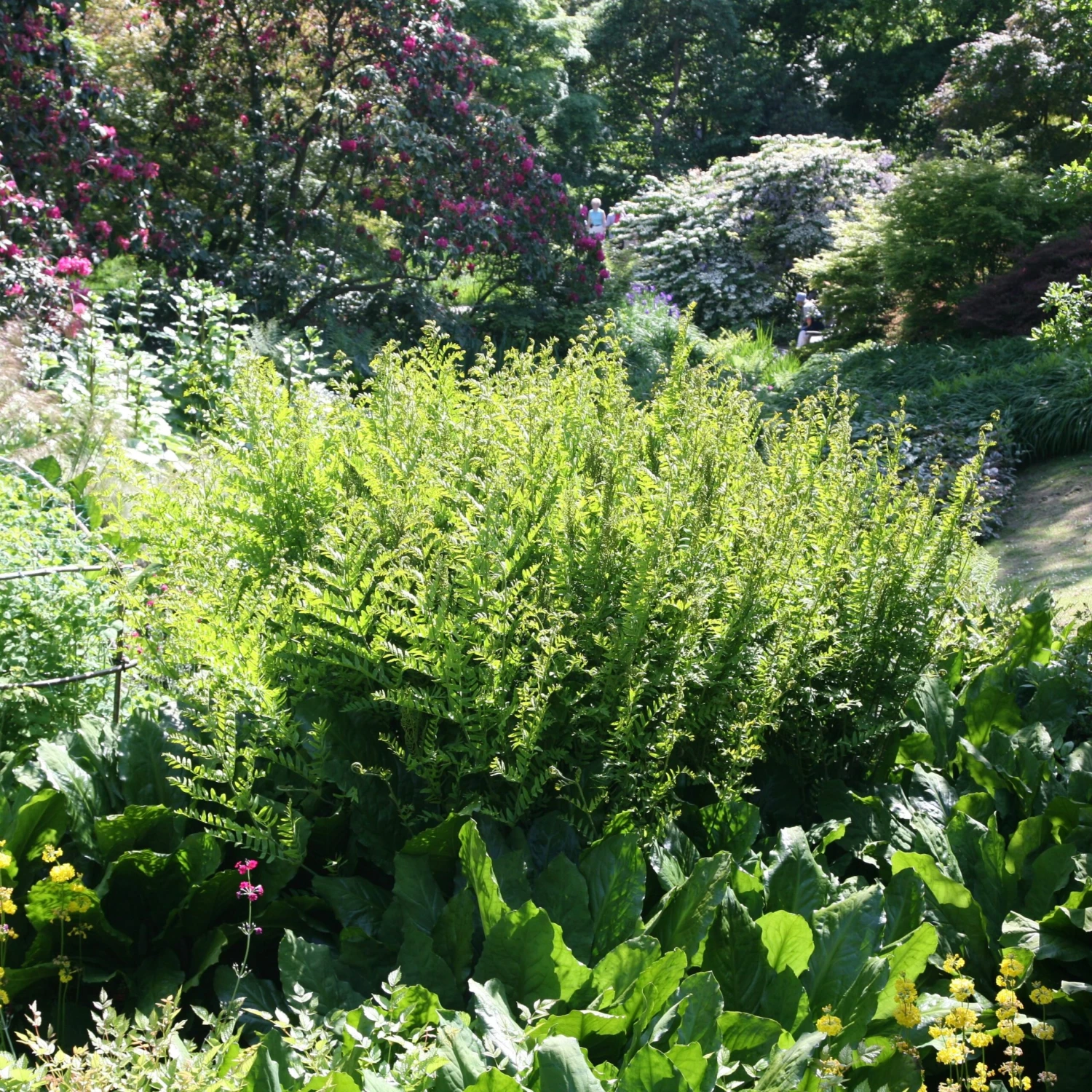 A stunning, giant fern that really lives up to its regal name. In spring, huge, bright green fronds unfurl and filter the sunlight. In autumn, they turn bronze before dying back. This deciduous fern forms a natural, rounded shape and looks fantastic planted near a pond or stream, where its feathery fronds will be reflected in the water. It likes damp, preferably acid soil, and looks breathtaking with other moisture-loving, large foliage plants such as rodgersia and gunnera.
