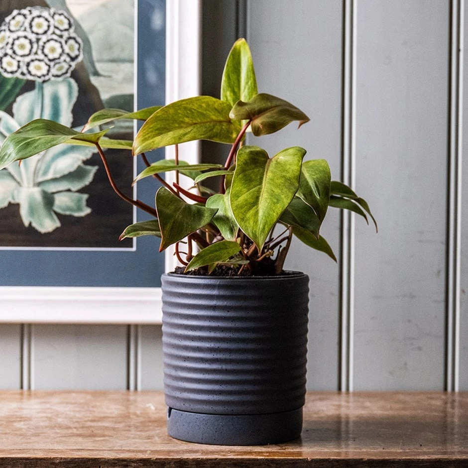 This semi-climbing Philodendron, with heart-shaped, glossy green foliage, is a fantastic species native to tropical rain forests in South America – and now equally at home as a lush, foliage houseplant. The large, bright yellow leaves are speckled with tones of green, and the stalks are a bright pink, making this a striking indoor plant for a warm, indirectly lit or shady room. ‘Painted Lady’ is an easy to grow, low maintenance choice for anyone new to growing houseplants, but looking for a touch of the rainforest with a twist.