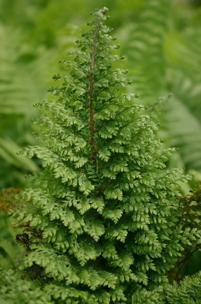 Soft, narrow, dark green fronds arranged in a distinctive shuttlecock-like shape. This handsome evergreen fern is perfect for a shady border with fertile, humus-rich, well-drained soil. Cutting back the foliage in early January allows the surrounding area to be underplanted with snowdrops, winter aconites or wood anemones.