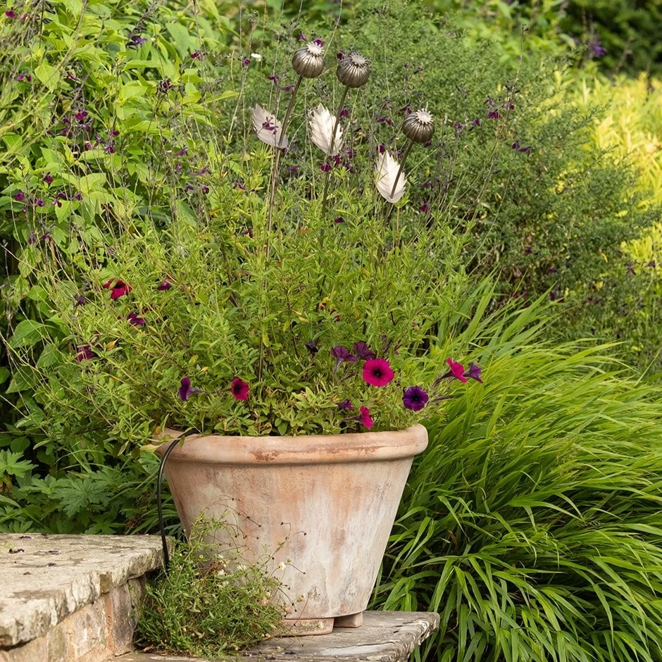 Keep year-round structure and interest in the garden with this decorative poppy seed head stake.