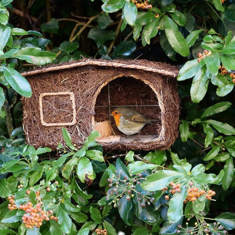 The Simon King Cabin design features both an open entrance door and secluded nest space behind the side wall. In addition to nesting, small birds may use the cabin as a shelter from harsh weather. In finding cover they are able to save essential body fat which aids their survival.