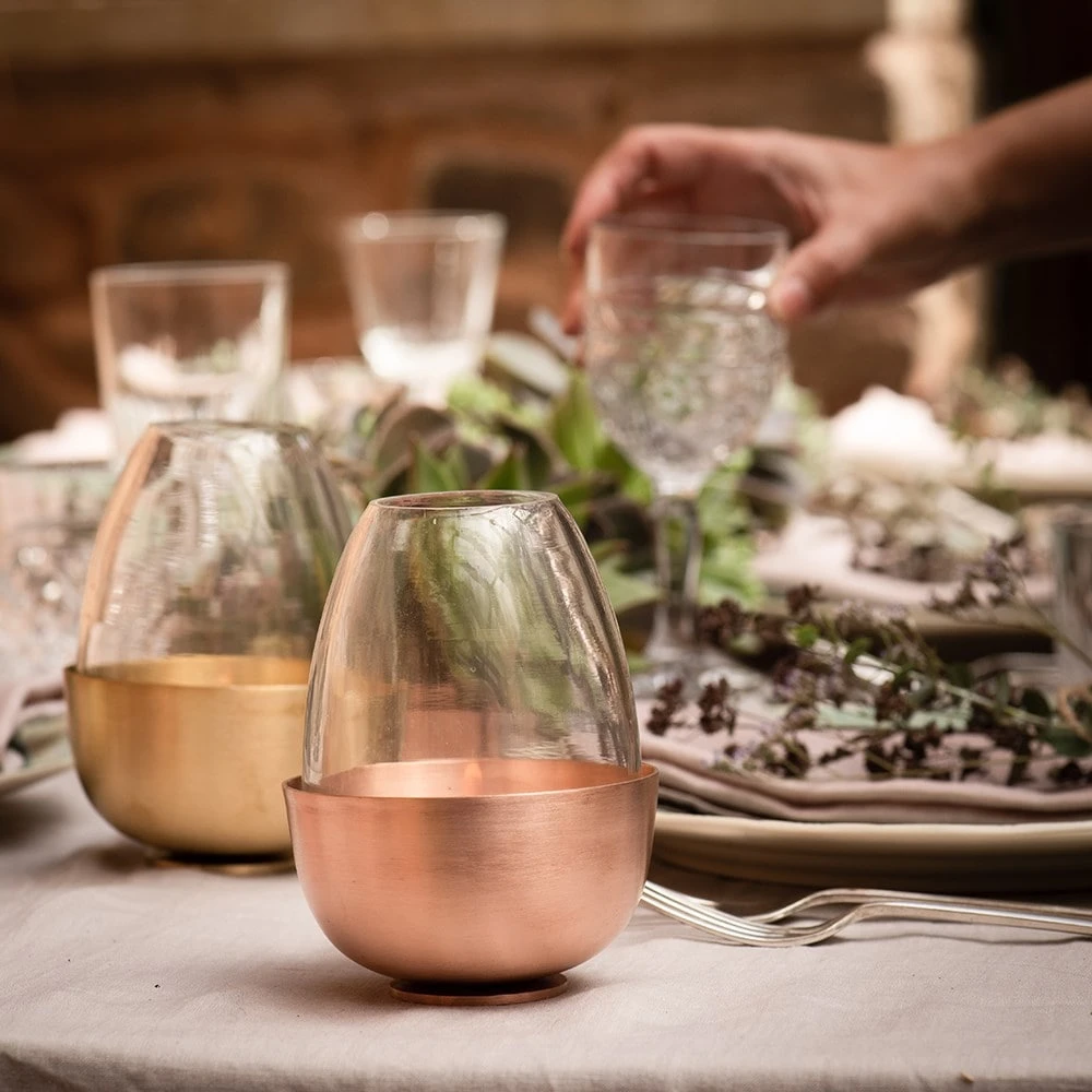 This freestanding version of our hanging tulip lanterns is designed for the tabletop. Elegantly shaped from solid copper, it brings a unique warmth to al fresco meals and garden gatherings.